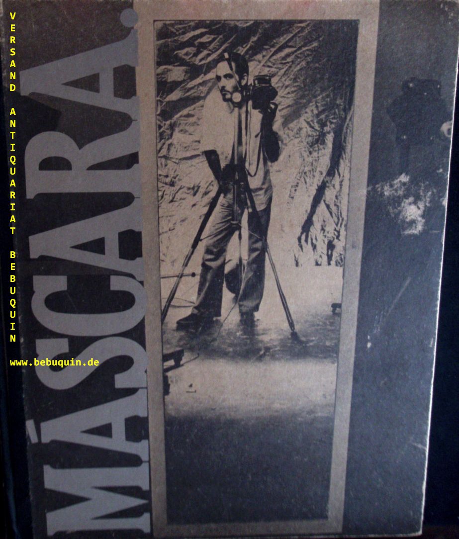 MIRO: Mascara. Foto-Präsentation einer wohl brasilianischen Theater Company. o.O., ca 1978. 46 x 36 cm. 50 Bl. mit 47 Portraiseiten. ill. OHLdr. Einband etwas berieben, in sgesamt feines Ex. EA mit einer eigenhändigen voll signierten Widmung des Fotografen Miro auf Vorsatz. Portraits z.B. von An tonio Abjamra, Antonio Maschio, Alfredo Kzam, Allik Kostakis, Aurelio Flores, Christine Yufon etc.