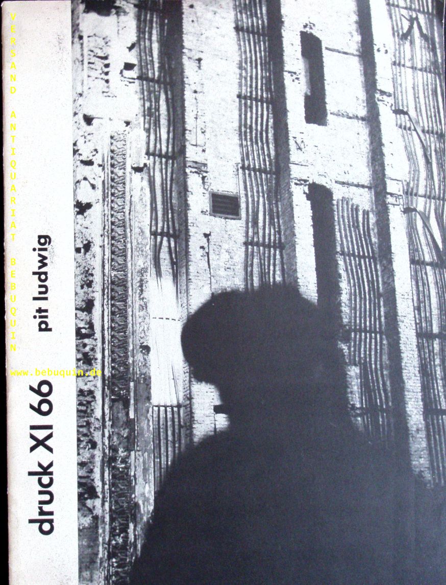 LUDWIG, Pit: Druck XI 66. Darmstadt (Bergsträsser), 1966. 42 x 30 cm. 4 lose Doppelblätter mit Abbildungen nach Bühnenfotos von Pit Ludwig. ill. OKart. gutes Ex. 1 von 300 Ex. der EA.