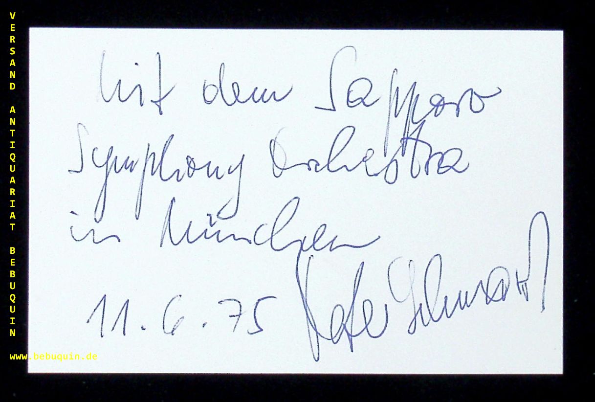 SCHWARZ, Peter (Dirigent): eigenhändig signierte und datierte Autogrammkarte. München (Philharmonie), 11.6.1975. 8 x 12,5 cm. Karteikarte. Peter Schwarz (Dirigent) (1936–2006), deutscher Kirchenmusiker, Chorleiter und Dirigent. (Wikipedia)