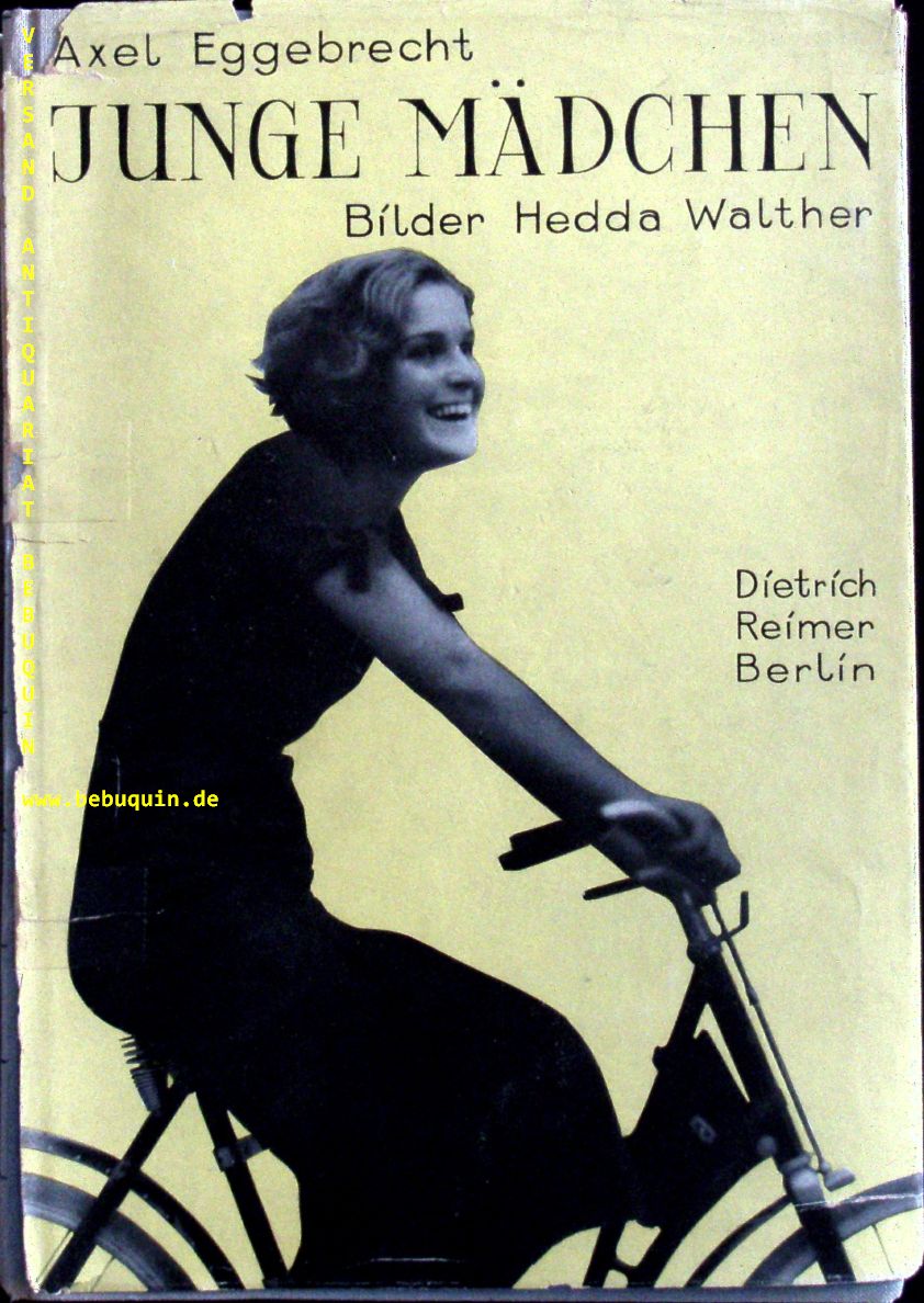 WALTHER.– EGGEBRECHT, Axel: Junge Mädchen. Berlin (Reimer), 1932. Gr. 8°. 151 S. mit 32 Fototafeln von Hedda Walther. OLn mit OUmschl. Umschlag lädiert, sonst gutes Ex. EA.
