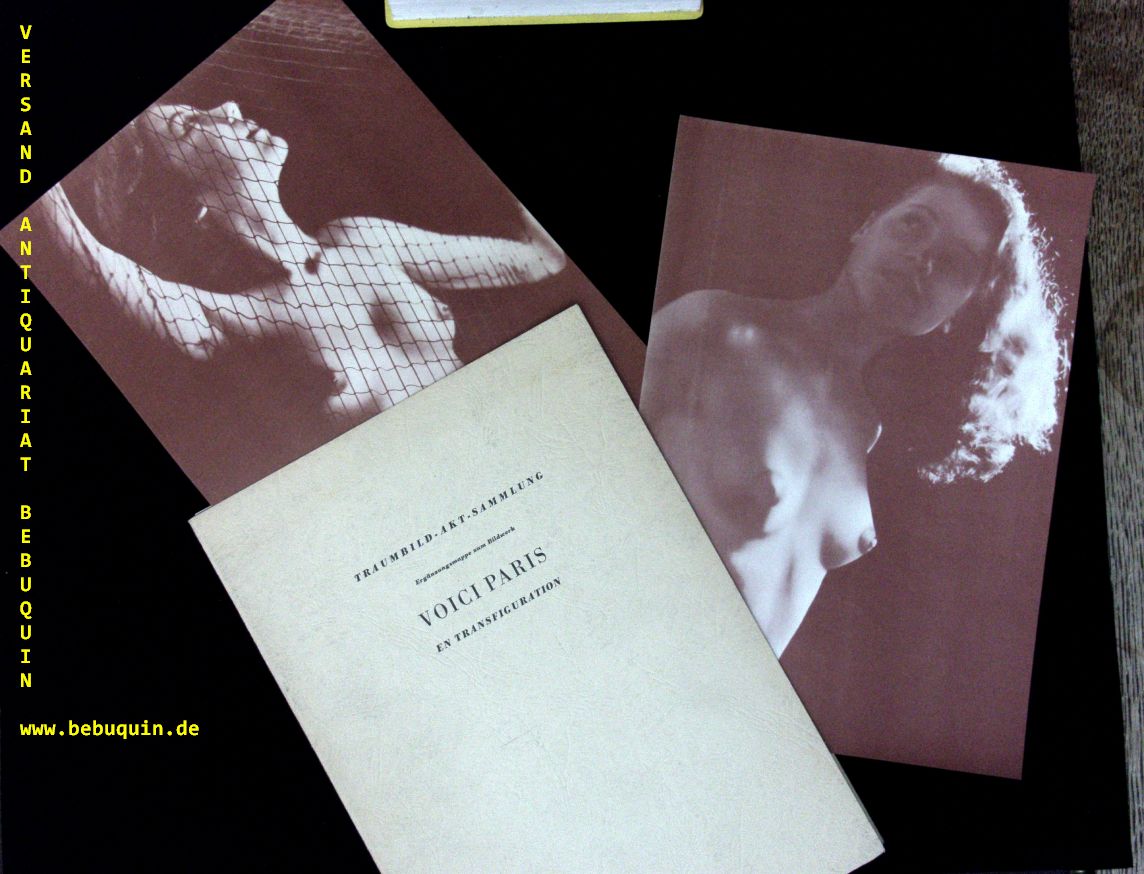 EROTIK.– VOICI PARIS.– en transfiguration. Traumbild-Akt-Sammlung. Ergänzungs-Mappe zum Bildwerk. o.O., 1960. 4°. 24 Tafeln in Kupfertiefdruck. OKart. Mappe etwas angeschmutzt, sonst gutes Ex. EA.