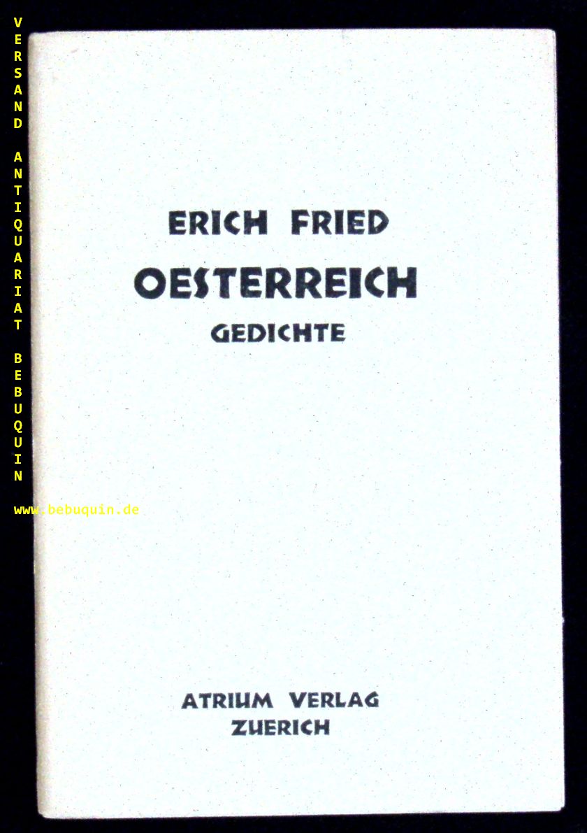 FRIED, Erich: Österreich. Gedichte. Zürich (Atrium), 1946. 31 (1) S. OKart. mit OUmschl. feines Ex. EA. WG² 2 mit falscher Jahresangabe.