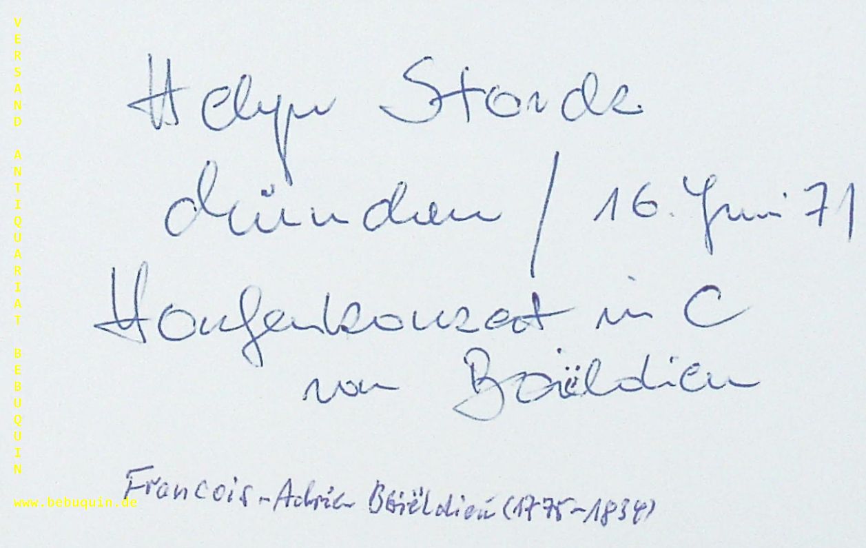 STORCK, Helga (Harfenistin): eigenhändig signierte und datierte Autogrammkarten. München (Herkulessaal), 16.6.1971. 8 x 12,5 cm. Karteikarte. Helga Storck (Musikerin) (* 1940), deutsche Harfenistin und Hochschullehrerin. (Wikipedia)