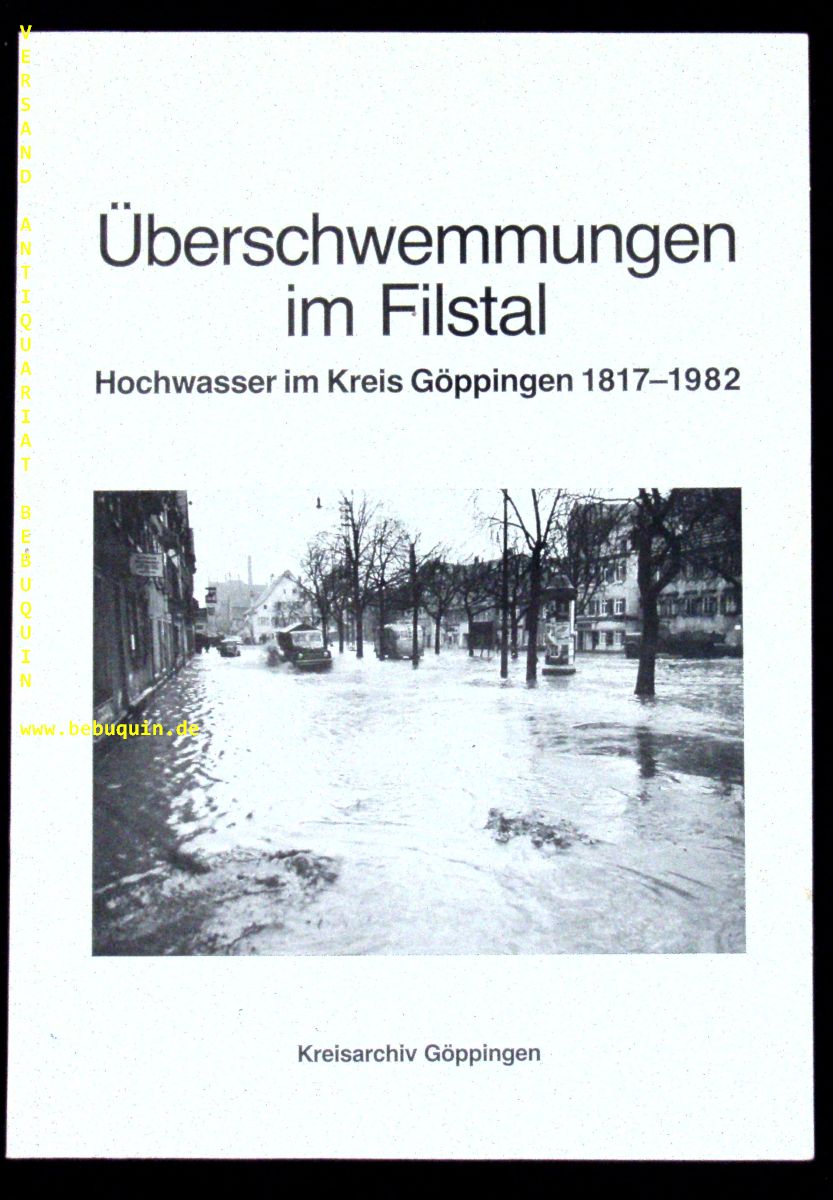 GÖPPINGEN.– JENTE, Rolf: Überschwemmungen im Filstal. Hochwasser im Kreis Göppingen 1817 – 1982. Göppingen (Kreisarchiv), 1983. 4°. 124 S. mit zahlr. teils Bldlern und Graphiken, ill. OKart. = Veröffentlichungen des Kreisarchivs Göppingen, Bd. 7. EA.