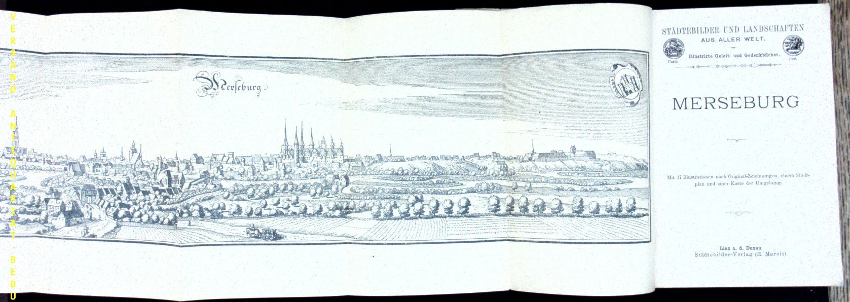 MERSEBURG.– MERSEBURG.– Städtebilder und Landschaften aus aller Welt, No. 114. Leinz (Mareis), ca 1900. kl. 8°. 40 S. mit 17 Abb. nach Original-Zeichnungen, 1 Stadtplan und 1 Karte der Umgebung. ill. OBr. Rücken teils abgerieben. EA des sehr seltenen Stadtführers.