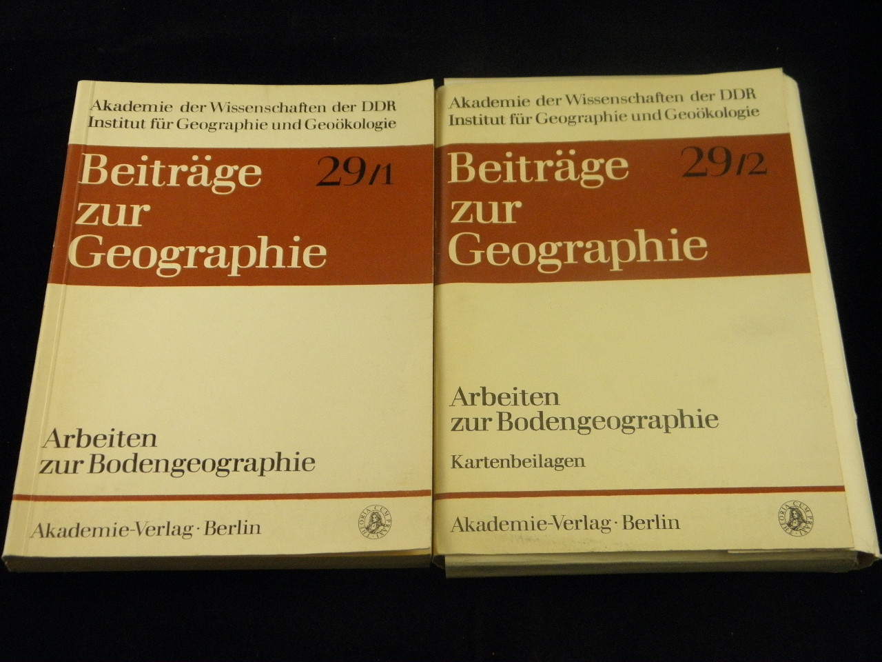 GEOGRAPHIE.– LÜDEMANN, Heinz: Arbeiten zur Bodengeographie. Kartenbeilage. 2 Bände. Berlin (Akademie), 1978- Gr. 8°. 341 S. mit 64 Abb., 50 Tabellen und 14 meist farb. Anlagen. OKart. = Beiträge zur Geographie, Bd. 29. EA.