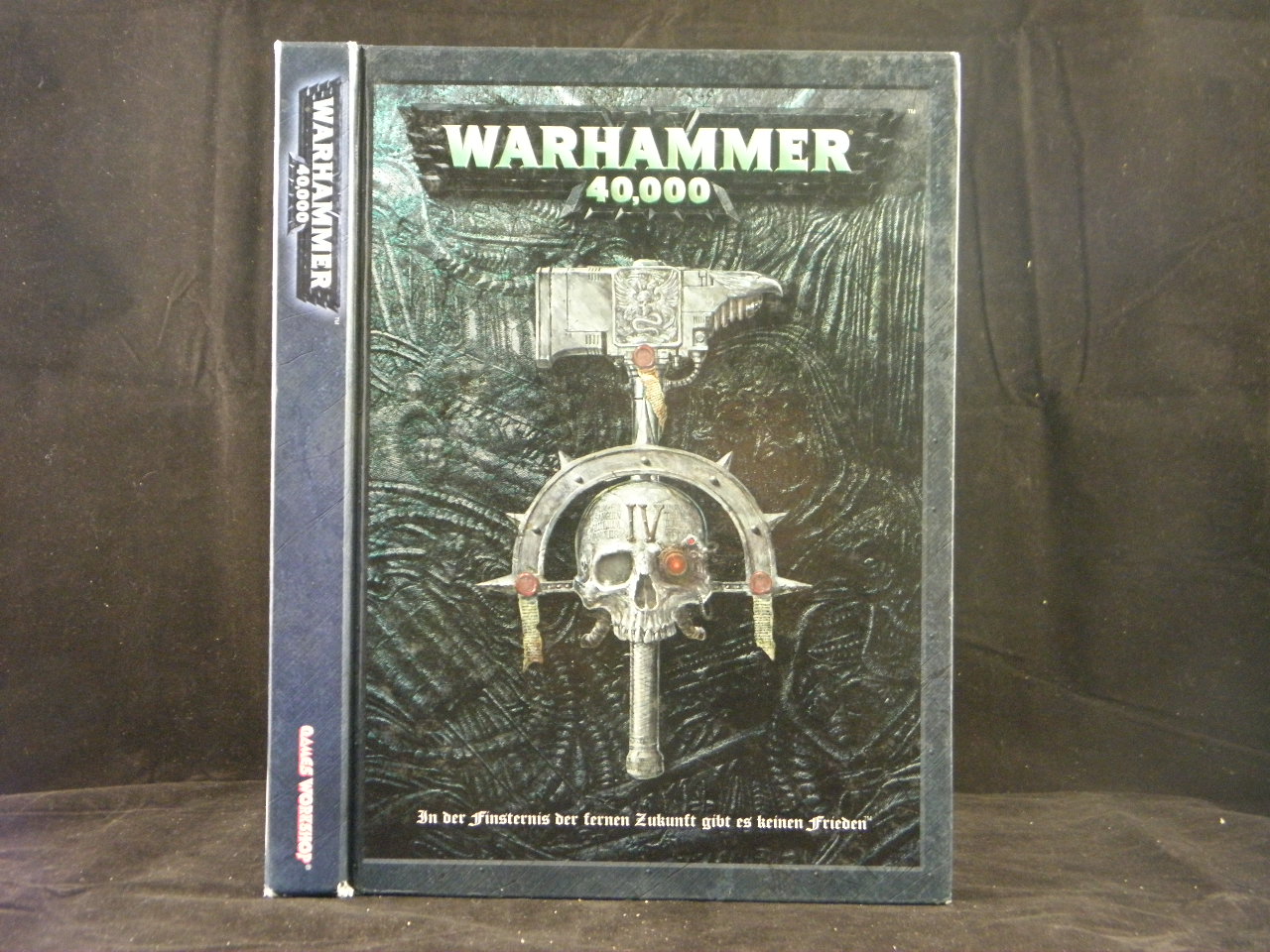 TABLETOP-SPIELE.– PRIESTLEY, Rick + CHAMBERS, Andy: Warhammer 40.000. In der Finsternis der fernen Zukunft gibt es keinen Frieden. Düsseldorf (Game workshop), 2004. 4°. 270 S. mit zahlr. zumeist farb. Bildern und Bildtafeln. farb. ill. OPb. Ecken minimal berieben, sonst tadellos.