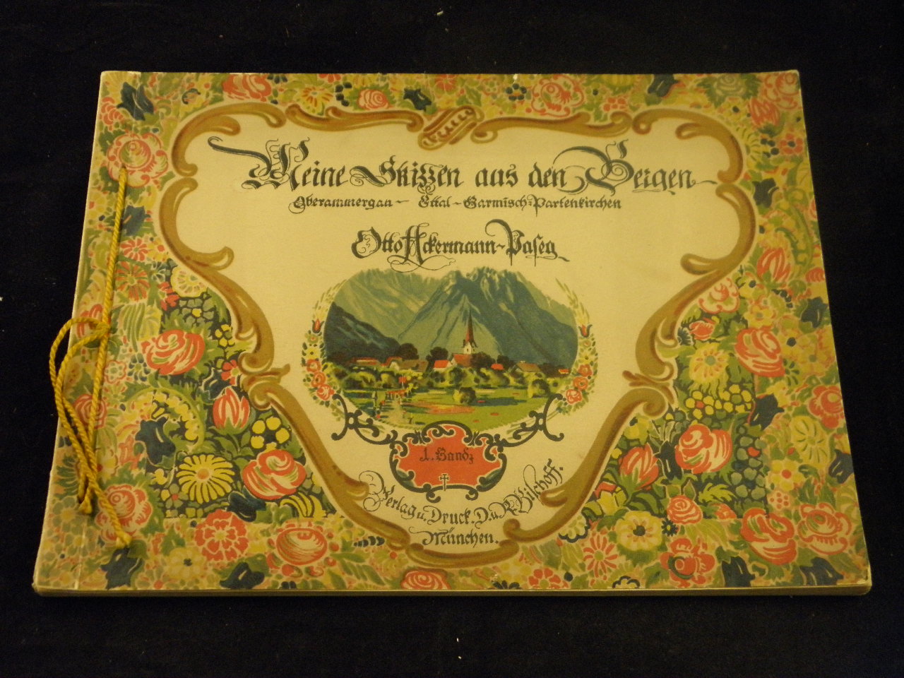 BAYERN.– ACKERMANN-PASEG, Otto: Meine Skizzen aus den Bergen. Oebrammergau – Ettal – Garmisch-Partenkirchen. Text von Joseph Maria Lutz. München (Bischoff), (1921). Quer 4°. 25 Bl. mit Malskizzen. farb. ill. OKart mit Kordelbindung. feines Ex. EA.