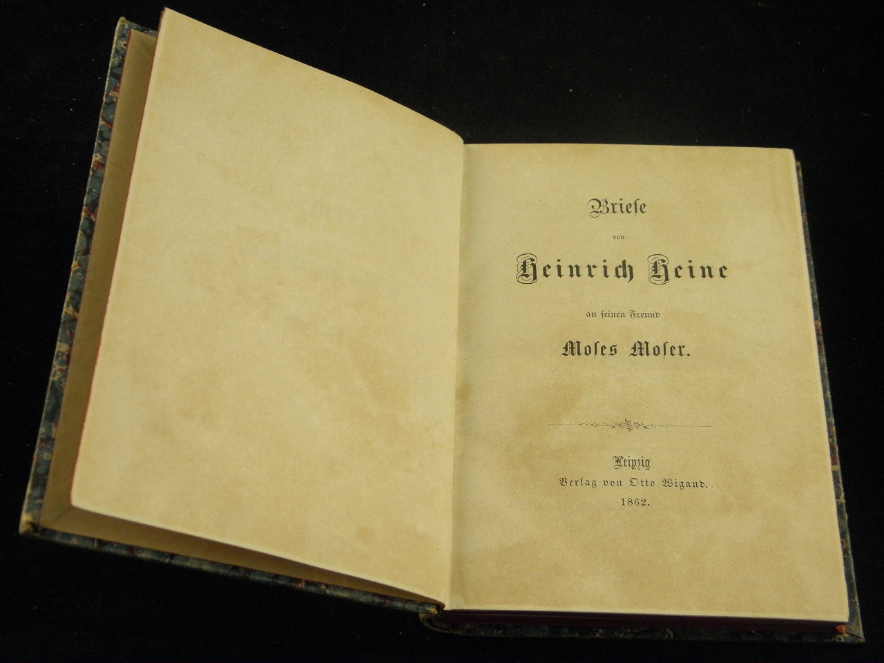HEINE, Heinrich: Briefe an seinen Freund Moses Moser. Leipzig (Wigand), 1862. kl. 8°. VII, 232 S. Pb der Zeit mit goldgeprägtem Rücken. gutes Ex. EA. Wilhelm / Galley 307.