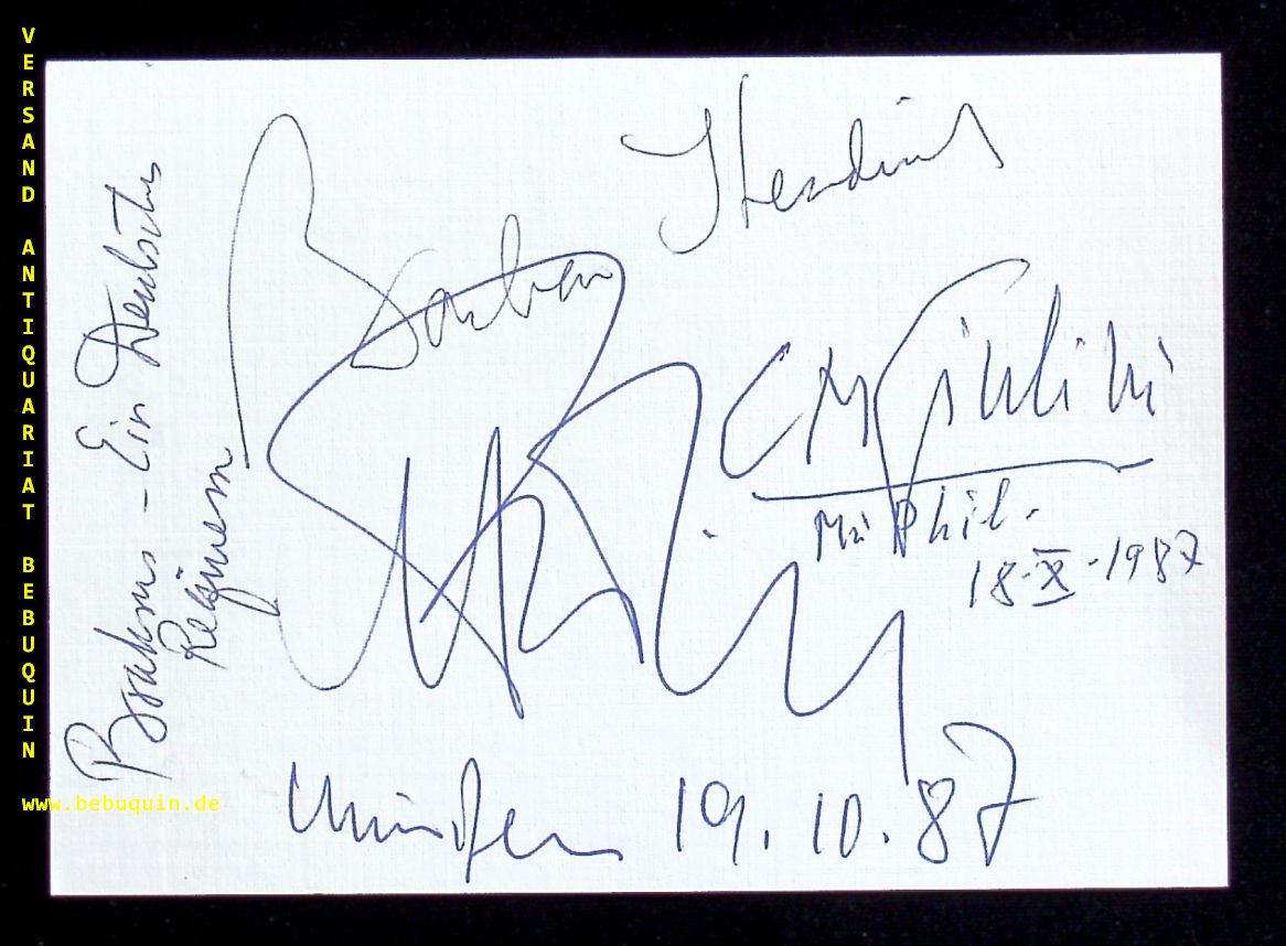 GIULINI, eigenhändig von allen signierte und datierte große Autogrammkarte.