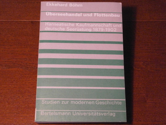 SCHIFFAHRT.– BÖHM, Ekkehard: Überseehandel und Flottenbau. Hanseatische Kaufmannschaft und deutsche Seerüstung 1879 – 1902. Düsseldorf (UnIversität), 1972. Gr. 8°. 417 S. OKart. Ordnungsgemäß aus Bundeswehrbeständen ausgesondertes Bibliotheksexemplar (Stempel, Rückenschild). = Studien zur modernen Geschichte, Bd. 8. EA.