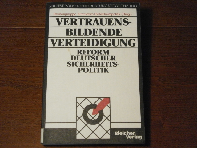 STUDIENGRUPPE ALTERNATIVE SICHERHEITSPOLITIK: (Hrsg.) Vertrauensbildende Verteidigung. Reform deutscher Sicherheitspolitik. Gerlingen (Bleicher), 1989. Gr. 8°. 308 S. mit Abb. farb. ill OKart. Ordnungsgemäß aus Bundeswehrbeständen ausgesondertes Bibliotheksexemplar (Stempel, Rückenschild). = Militärpolitik und Rüstungsbegrenzung, Bd. 10. EA.