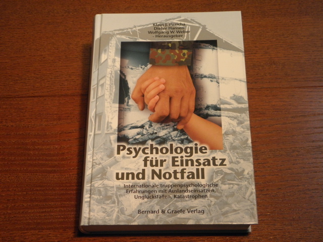 PUZICHA, HANSEN, WEGER: (Hrsg.) Psychologie für Einsatz und Notfall. Internationale truppenpsychologoische Erfahrungen mit Auslandseinsätzen, Unglücksfällen, Katastrophen. Bonn (Bernard & Graefe), 2001. Gr. 8°. 528 S. mit zahlr. Bildern. farb. ill. OPb. tadellos. EA.