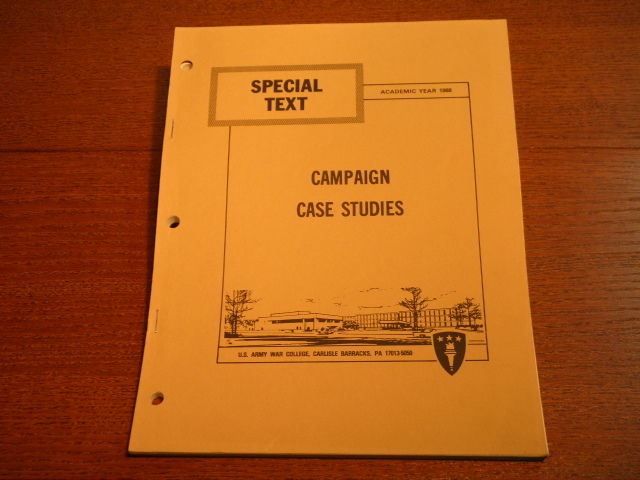 CAMPAIGN CASE STUDIES.– Special Text. Carlisle Barracks (U.S. Army War College), 1988. 4°. 167 S. mit zahlr. Bildern. ill. OKart. mit Lochbindung. „This document is prepared solely for use by the staff, faculty, and students of the U.S. Army War College.“