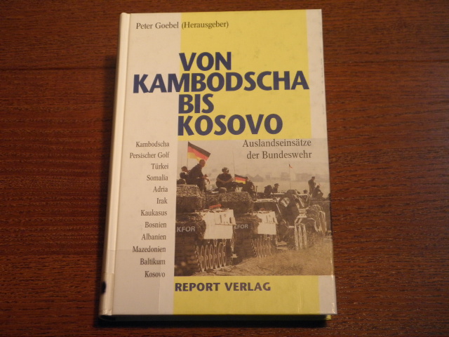 GOEBEL, Peter: (Hrsg.) Von Kambodscha bis Kosovo. Auslandseinsätze der Bundeswehr seit Ende des Kalten Krieges. Frankfurt (Report), 2000. 348 S. ill. OPb. Ordnungsgemäß aus Bundeswehrbeständen ausgesondertes Bibliotheksexemplar (Stempel, Rückenschild). EA.