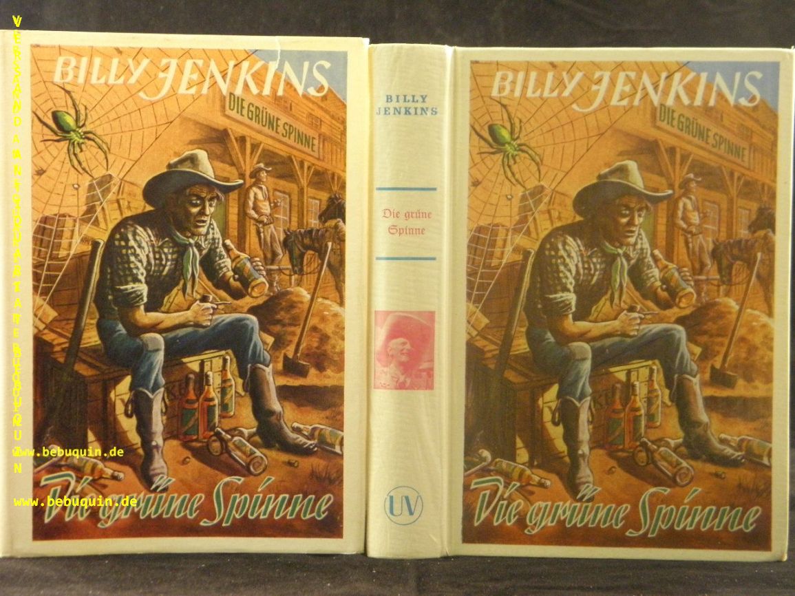 BILLY JENKINS.– KRÜGER, Nils: Die grüne Spinne. Sinzig (Uta), 1953. 256 S. farb. ill. OPb. mit OUmschl. Name auf Titelseite überklebt, sonst schönes Ex. = Billy Jenkins Wild – West – Erzählungen, Bd. 87. 1. Aufl. dieser Ausgabe.