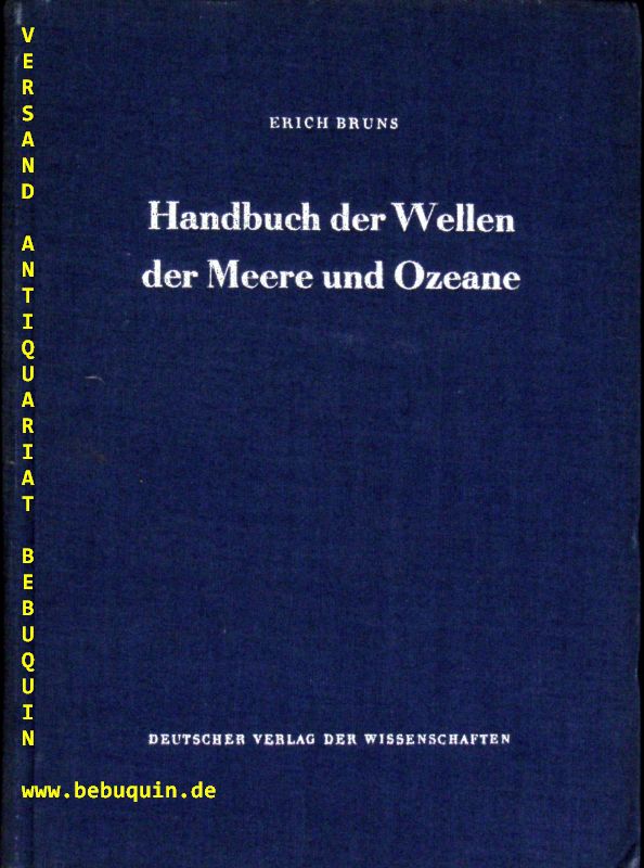MEERESKUNDE.– BRUNS, Erich: Handbuch der Wellen der Meere und Ozeane. Berlin (Wissenschaften), 1955. Gr. 8. XI, 255 S. mit 4 Falttafekln und 150 Abb. OLn mit Silberprägung. tadellos. seltene EA.