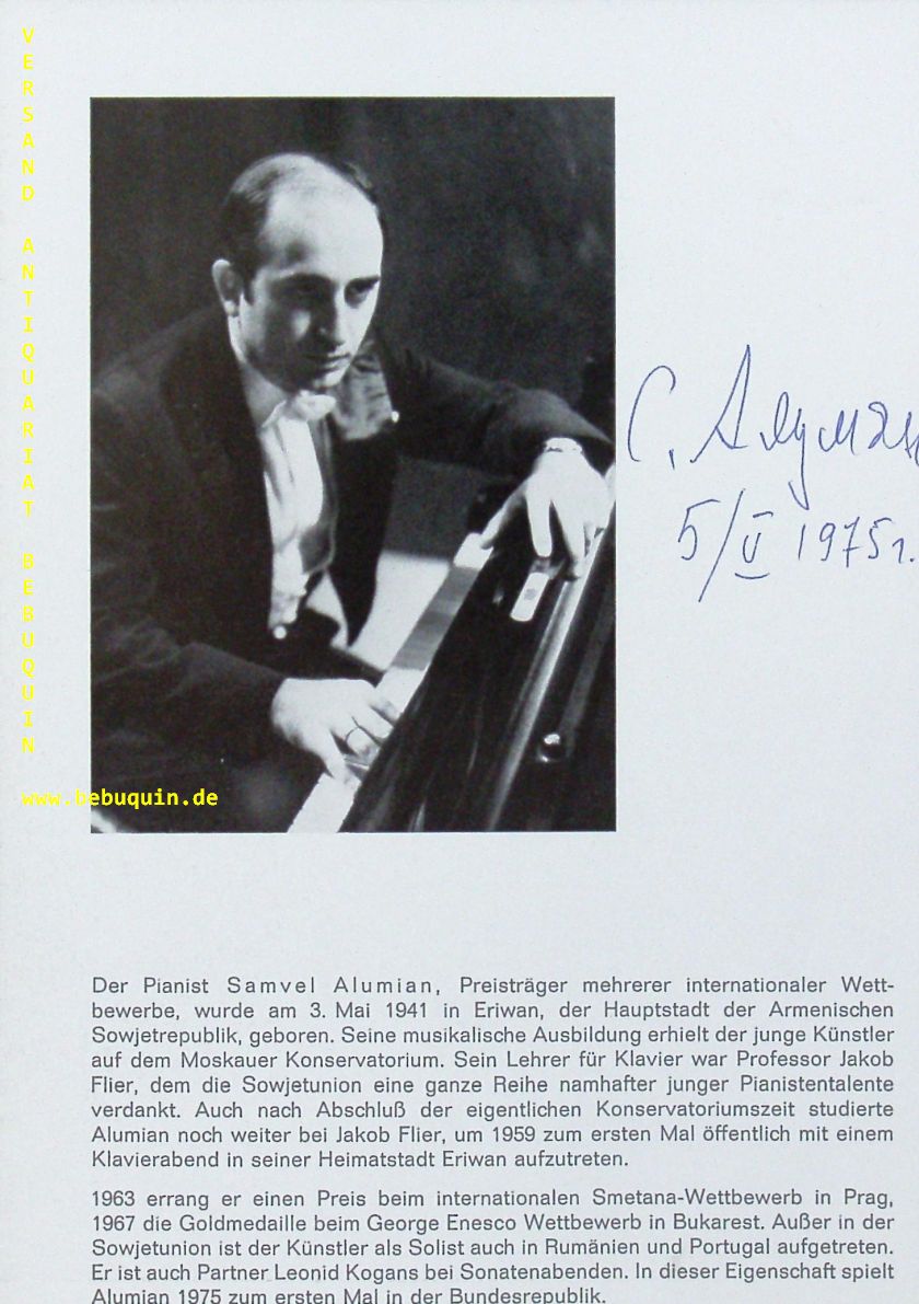 ALUMIAN, Samvel (Pianist): eigenhändig signierte und datierte Portraitseite. München (Philharmonie), 5.5.1975. 20 x 14 cm. 1 Bl.