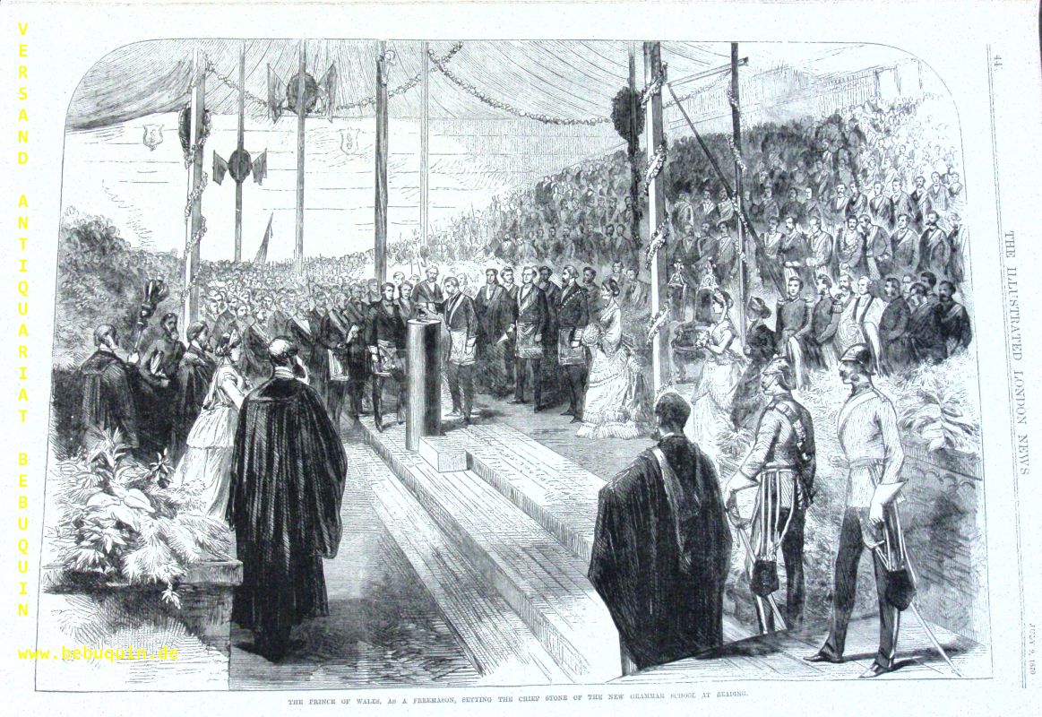 THE ILLUSTRATED LONDON NEWS.– Vol. LVII. Hrsg. von John Lash. Juli bis Dezember 1870. London (Leighton), 1870. 41 x 30 cm. IV, 692 S. mit Hunderten von Holzschnittillustrationen aller Größen und Inhalte. ill. OLn mit Gold- und Blindprägung. Rücken knitterspurig, etwas bestaubt, ohne die Farbtafeln, insgesamt gut. Eine Auswahl der Motive: Railway Accident rear Newark, Meeting of the Agricultural Society at Oxford, All-England Croquet Club at Wimbledon, A Sketch at Birmingham Cattle-Show, Scenes in China: I-Chang Gorge on the Upper Yang-Tze-Kiang, Christmas in Australia, Prize Dogs at the Birmingham Show, Prize Dogs at the Crystal Palace, Paris Fashion for July, India: The Oghee Punjaub Frontier Post, Spinning Net Thread in the Claddagh Ireland, Appearance of the Plantet Jupiter, Scenes in Paris: Arrest of a Supposed Prussian Spy on the Boulevard de Italians Paris, The Halles Centrales, Balloon from Paris Passing over Versailles, Battle of Sedan, French Prisoners on the Road from Sedan, Guns Captured by Prussians at Sedan, Map of the Country Around Chalons, The Siege of Metz: Imperial Guard, Prussian Advance Post at Mercy Le Haunt, View of the South West, The Fight at Mouzon, The Sedge and Defence of Paris: Burning Houses to Clear Space to before Fort Bicetre, A Captive Balloon at Montmatre, Departures of Americans and English, Gun-Boats on the Seine, Troops of the Regular Army encamped in the Champs Elysees, Battle at Villejuif, Prussian Spies Brought into Paris, French Guns and Fortifications, Waiting at Le Mans for a Train to Tours. Sehr interessanter Jahrgang zum Deutsch/Französischen Krieg 1870/71.
