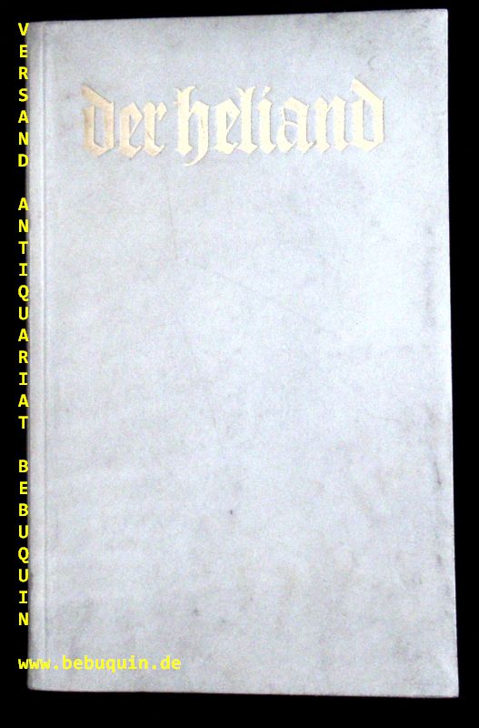SIMROCK, Karl: (Übers.) Der Heliand. Das Lied von Christi Leben u. Leiden u. die Bruchstücke der Genesis nach d. altsächsischen Handschrift des 9. Jahrhunderts. Offenbach (Gerstung), 1924. Gr. 8°. 157 S. in zweifarb. Druck. OPb. mit Goldprägung. gutes Ex. Nr. 164 von 400 Ex. der allgemeinen Ausgabe.