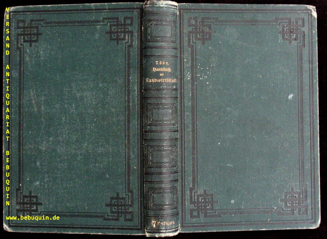 LANDWIRTSCHAFT.– LÖBE, William: Handbuch der rationellen Landwirtschaft für praktische Landwirte und Oekonomie-Verwalter und Schüler landwirtschaftlicher Lehranstalten. 7. Aufl. Weimar, (Bernhard Friedrich Voigt), 1887. 703 S. mit 202 Abbildungen der bewährtesten Maschinen und Geräte und Porträts von Albrecht Thaer und Justus v. Liebig. OLn. Ecklen leicht bestoßen, NaV, etwas bestaubt.