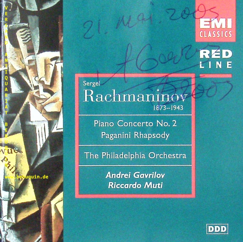KLASSIK-CD.– GAVRILOV, Andrei (Pianist): eigenhändig auf dem Booklet datiert und signiert. Rachmaninov: Piano Concerto No 2. Philadelphia Orchestra mit Riccardo Muti. EMI (724356986923), 21.5.2003. Original CD.