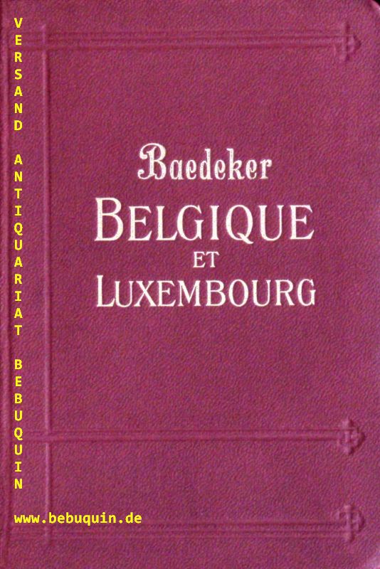 BAEDEKER.– BELGIQUE ET LUXEMBOURG.– 20. Aufl. Leipzig, Paris (Baedeker, Ollendorff), 1928. XLVI, 346 S. mit 14 Karten + 28 Stadtplänen. OLn. NaT. 1. + einzige Auflage dieser Ausgabe. Baedeckerkatalog F90.