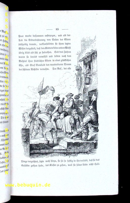 MUSÄUS, Johann Karl August: Volksmährchen der Deutschen. Hrsg. von Julius Ludwig Klee. Prachtausg. in 1 Bde. Leipzig (Mayer & Wigand), 1842. 4°. 752 S zahlr. Holzschnitten von Jordan, Osterwald, Richter und Schrödter. OHLdr mit goldgeprägtem Rücken. Einband etwas berieben, innen teils fingerspurig, insgesamt gutes Ex. 1. Aufl. dieser Ausgabe