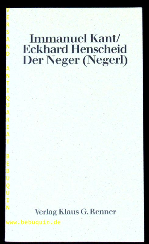 KANT, Immanuel + HENSCHEID, Eckhard: Der Neger (Negerl). München (Renner), 1982. 143 (2) S. OKart. tadellos.