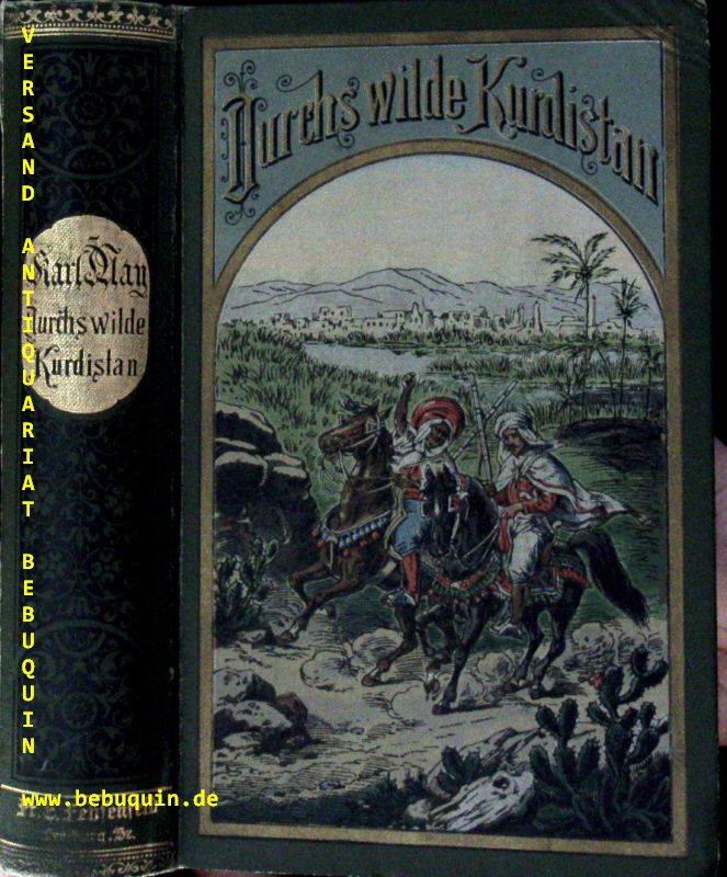 MAY, Karl: Durchs wilde Kurdistan. Reiseerlebnisse. 51.– 55. Tsd. Freiburg (Fehsenfeld), (1902). 638 (5) S. farb. ill. OLn. (DB 39) Rücken am Fuß gering geblichen und bestoßen, sehr schönes Ex. mit farbstarkem Einband und goldglämzendem Rücken. = Gesammelte Reiseromane, Band II.