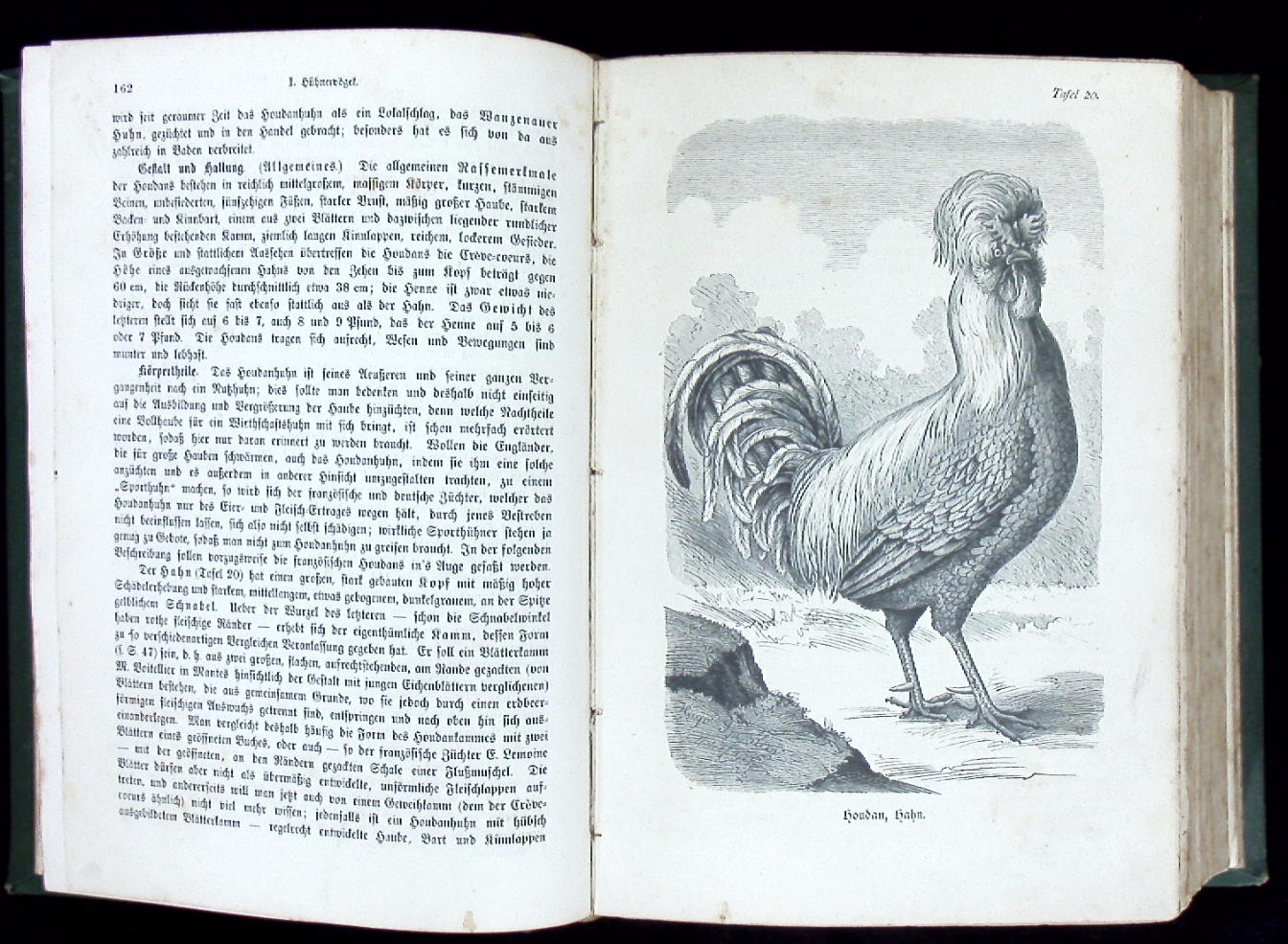 ORNITHOLOGIE.– DÜRIGEN, Bruno: Die Geflügelzucht nach ihrem jetzigen rationellen Standpunkt. Berlin (Parey), 1886. Gr. 8°. S. VI – XIII, 880 S. mit 80 Rassetafeln in Holzschnitt von Hugo Schindler und 101 Textholzstichen. ill. OHLdr. Kanten leicht berieben, Schnitt und Titelei stockfleckig, sonst hin und wieder fingerspurig, Block etwas gelockert, insgesamt noch gut. seltene EA des wichtigen Standardwerks mit den eindrucksvollen Tafeln.