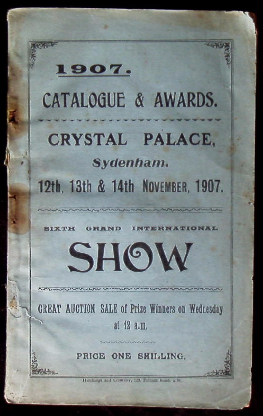 ORNITHOLOGIE.– CATALOGUE & AWARD 1907.– Sixth Grand International Show. Great Auction sale of Prize Winners. Sydenham, 12.-14. November 1907. 364 S. mit zahlr. Abb. OBr. Heftklammern stärker angerostet. seltener Katalog.