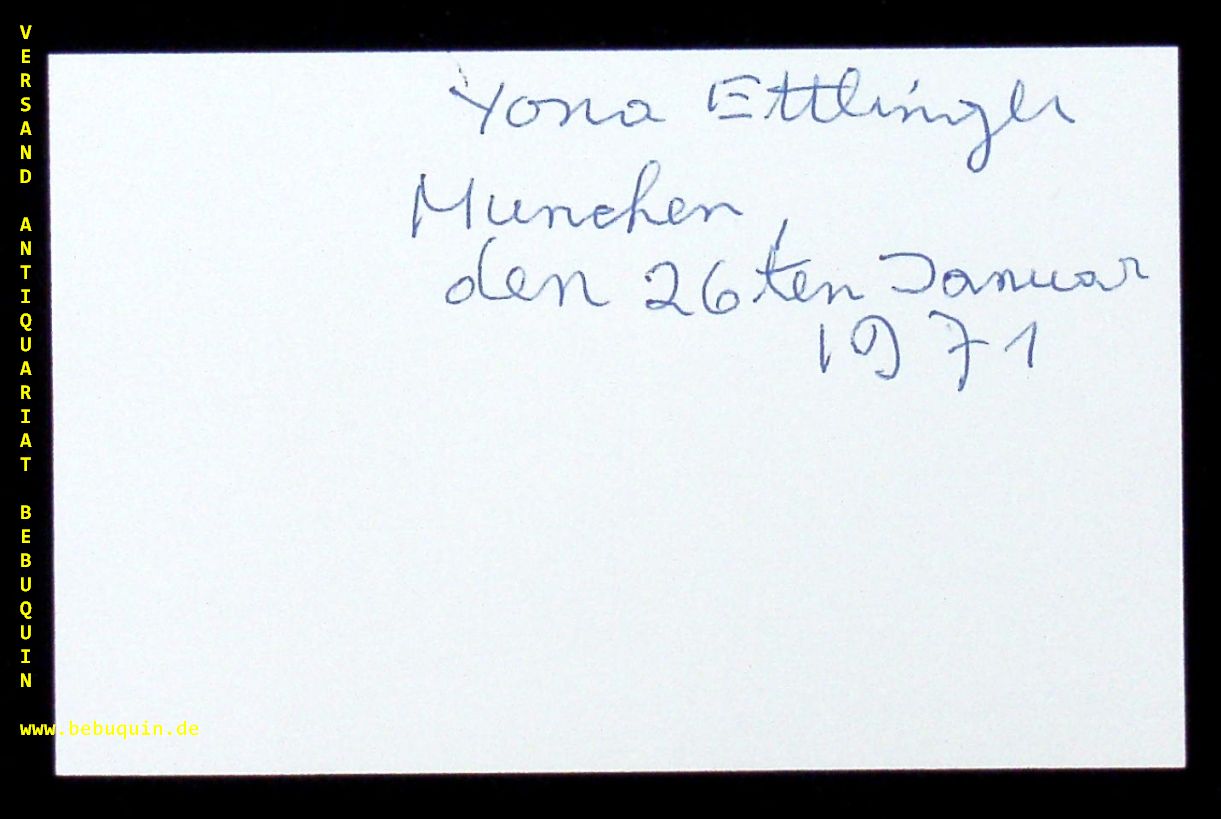 ETTLINGER, Yona (Klarinettist): eigenhändig datierte und von allen signierte Autogrammkarte. München (Herkulessaal); 26.1.1971. 8 x 12,5 cm. Karteikarte. Yona Ettlinger war Klarinettistin und spielte und unterrichtete in Israel, Frankreich und England. Ettlinger gilt als prominenter klassischer Klarinettist seiner Generation und als einer der bekanntesten Instrumentalisten Israels. (Wikipedia)