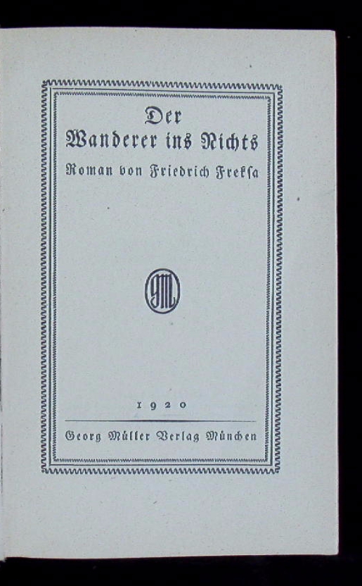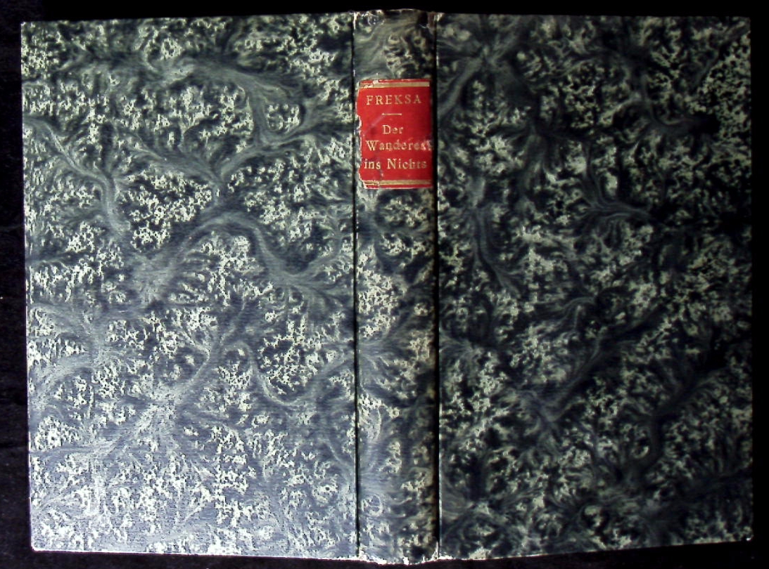 FREKSA, Friedrich: Der Wanderer ins Nichts. Roman. München (Georg Müller), 1920. 365 S. marmorierter Pb der Zeit mit goldgeprägtem Lederrückenschild. kaum bestoßen. sehr seltene EA des SF-Titels. Bloch 1033.