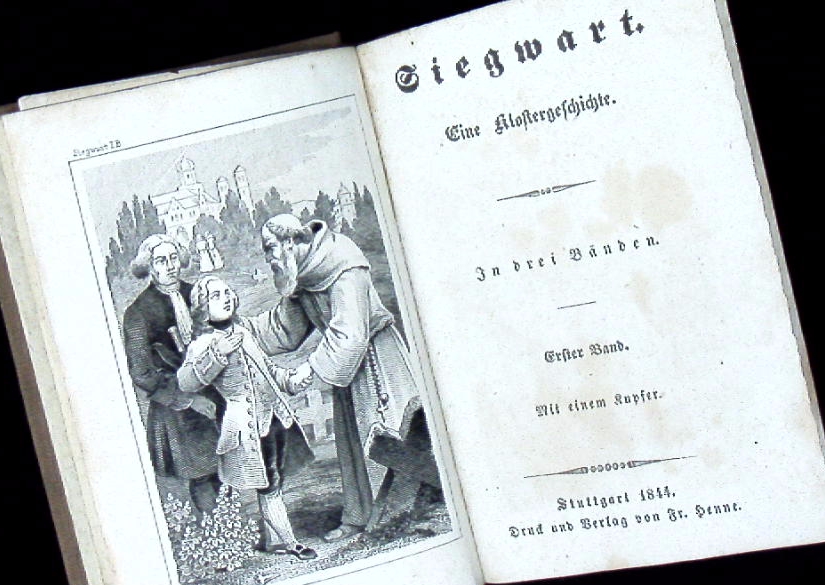MILLER, Johann Martin: Siegwart. Eine Klostergeschichte. 3 Bände in 1 Bd. Stuttgart (Henne), 1844. 12°. 255, 239, 236 S. mit 3 Kupferfrontispizes. neuer Ln. = Lieblingsbibliothek aus der Zeit des Siegwart, Hasper a Spada, Rinaldo. Hrsg. von Otto von Friedhelm. letzte Ausgabe. Vergl. Hayn Gotendorf VII/306