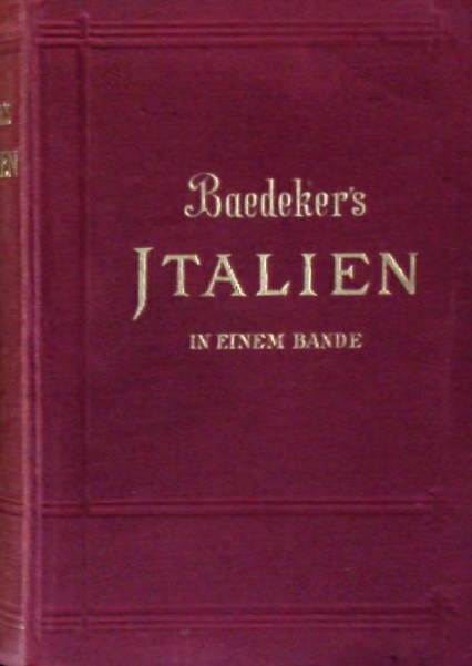 BAEDEKER.– ITALIEN.– Von den Alpen bis Neapel. Kurzes Reisehandbuch. 3. Aufl. Leipzig (Baedeker), 1895. XXXVII, 388 S. mit 15 größeren, 34 kleineren Karten und Stadtplänen sowie 18 Grundrissen. OLn. Übersichtsplan mif Falzeinrissen, WaT. BK D409.