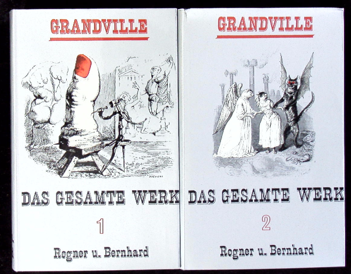 GRANDVILLE.– SELLO, Gottfried: (Einl.) Grandville. Das gesamte Werk. 1.– 5. Tsd. 2 Bände. München (Rogner & Bernhard), 1969. 1632 S. mit zahlr. Abb. und dreiseitigem Grümschnitt. OLn mit OUmschl. Umschlag mit kleinem Einriss, sonst sehr gut. EA.