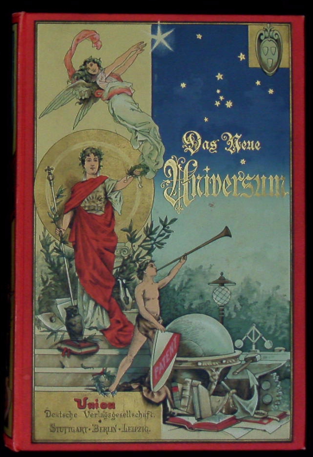 DAS NEUE UNIVERSUM. Die interessantesten Erfindungen und Entdeckungen auf allen Gebieten, sowie Reiseschilderungen, Erzählungen, Jagden und Abenteuer. Stuttgart (Union), 1899. 396 S. mit sehr zahlr. z.T. farb. Abb. im Text + auf Tafeln sowie der farbigen Falttafel „Der Riesenbrücke bei Müngsten“ und dem ungeöffneten Rückdeckel. ill. OLn. feines Ex. = Bd. 20. enthält die Geschichte „Durch die Luft“ von Franz Treller.