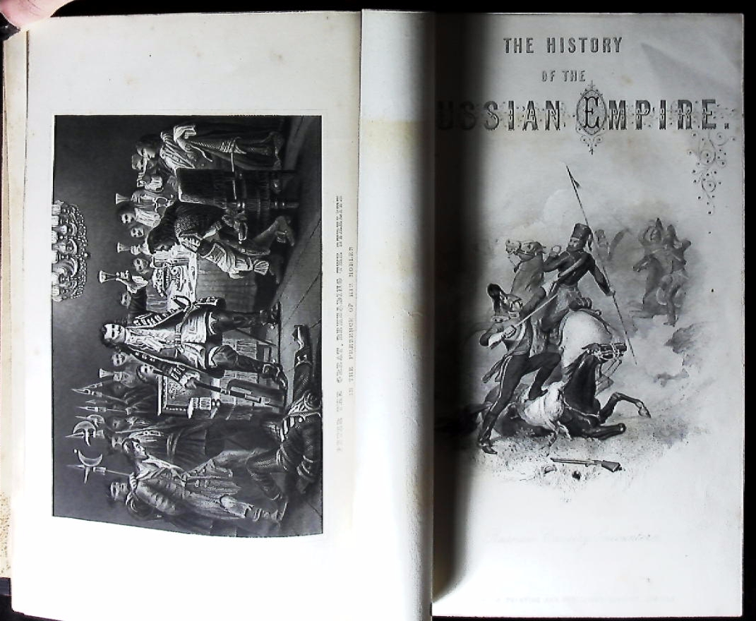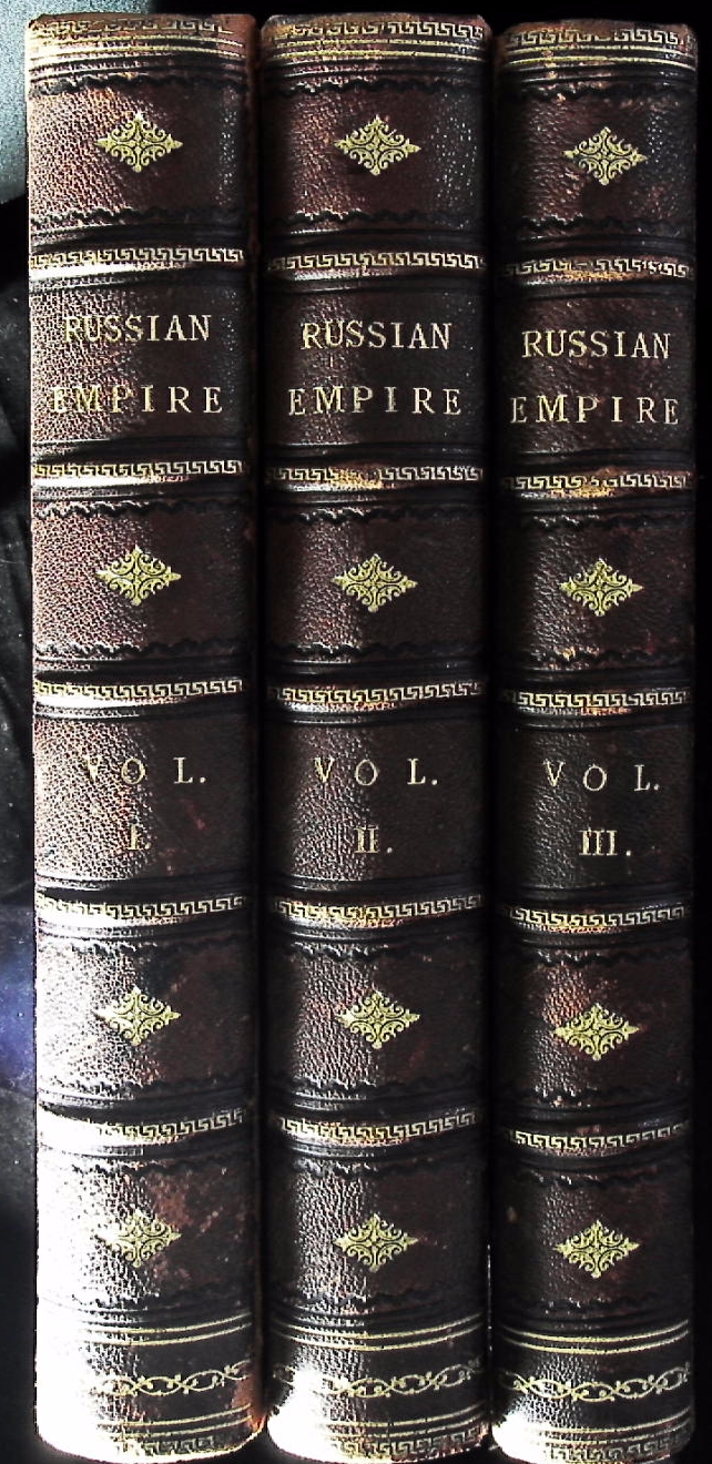 RUSSLAND.– TYRRELL, Henry + HAUKEIL, Henry A.: The history of Russia From the foundation of the empire to the war with Turkey in 1877 – 78. London (London Print. and Publ. Comp.), 1877/78. 4°. XVI, 416, 364, 396 S. mit 3 handkolorierten doppelseitigen Karten und zahlr. ganzseitigen gestochenen Portraits und Ansichten. OHLdr mit goldgeprägten Rücken. Kanten berieben, innen kaum stock- und fingerfleckig, insgesamt durchaus gut. seltene EA.