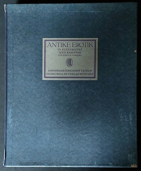 EROTIK.– VORBERG, Gaston: Antike Erotik in Kleinkunst und Keramik. München (Georg Müller), 1921. 4°. 4 Bl. + 113 mont. Bildtafeln. in OHLn.Mappe. Kanten etwas berieben, Papier teils stockfleckig, die Abbildungen gut. EA.