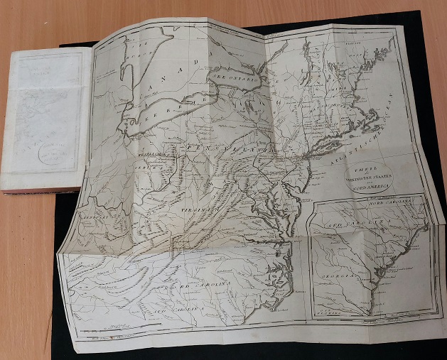 AMERIKA.– WELD, Isaac: Isaac Weld’s Reisen durch die Staaten von Nordamerika und die Provinzen Ober- und Unter-Canada, während den Jahren 1795, 1796 und 1797. Aus dem Englischen übersetzt. Berlin/Hamburg, 1801. 8°. [2] Bl., 475 S. mit 2 gefalteten Kupfern und 2 Karten. HLdr der Zeit mit 2 farbigen Rückenschildern. gutes Ex. = Bibliothek der neuesten und interessantesten Reisebeschreibungen, 4. dt. EA. Isaac Weld (1774–1856) was an Anglo-Irish topographical writer, explorer, and artist. He travelled extensively in North America was a member of the Royal Dublin Society. (Wikipedia)