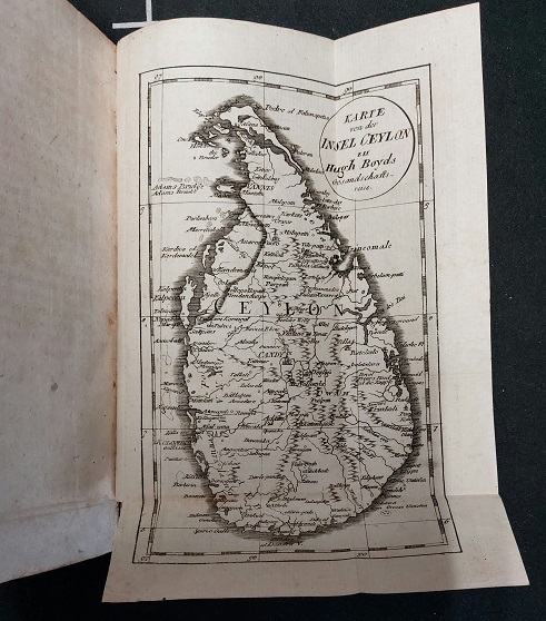 ASIEN.– BOYD, Hugh: Hugh Boyd’s Gesandtschaftsreise nach Ceylon. Mit historisch-statistischen Nachrichten von dieser Insel und dem Leben des Verfassers. Hrsg. von Lawrence Dundas Campbell. Berlin/Hamburg, 1802. 8°. 435 S. mit 2 Kupfern und 2 gefalteten Karten. HLdr der Zeit mit 2 farb. Rückenschildern. gutes Ex. = Bibliothek der neuesten und interessantesten Reisebeschreibungen, 10. dt. EA. Angebunden – Carpentier-Cossigny: Reise nach China und Bengalen. Bericht einer diplomatischen Reise zum König von Ceylon (Sri Lanka) `A journal of an embassy from the Government of Madras, to the king of Candy, in Ceylon, in the year 1782` des Iren Hugh Boyd (1746-1794), der 1781 eine Stelle als Sekretär des Gouverneuers von Madras, Lord Macartnay, angenommen hatte und eines Berichts des Ingenieurs der französischen Ostindiengesellschaft, J. F. Charpentier de Cossigny (1736-1809), von seiner Reise nach China und Bengalen. (Engelmann. Bibliotheca geographica 130 u. 132; Griep/Luber II, 1060; Vgl. Cox I.309)