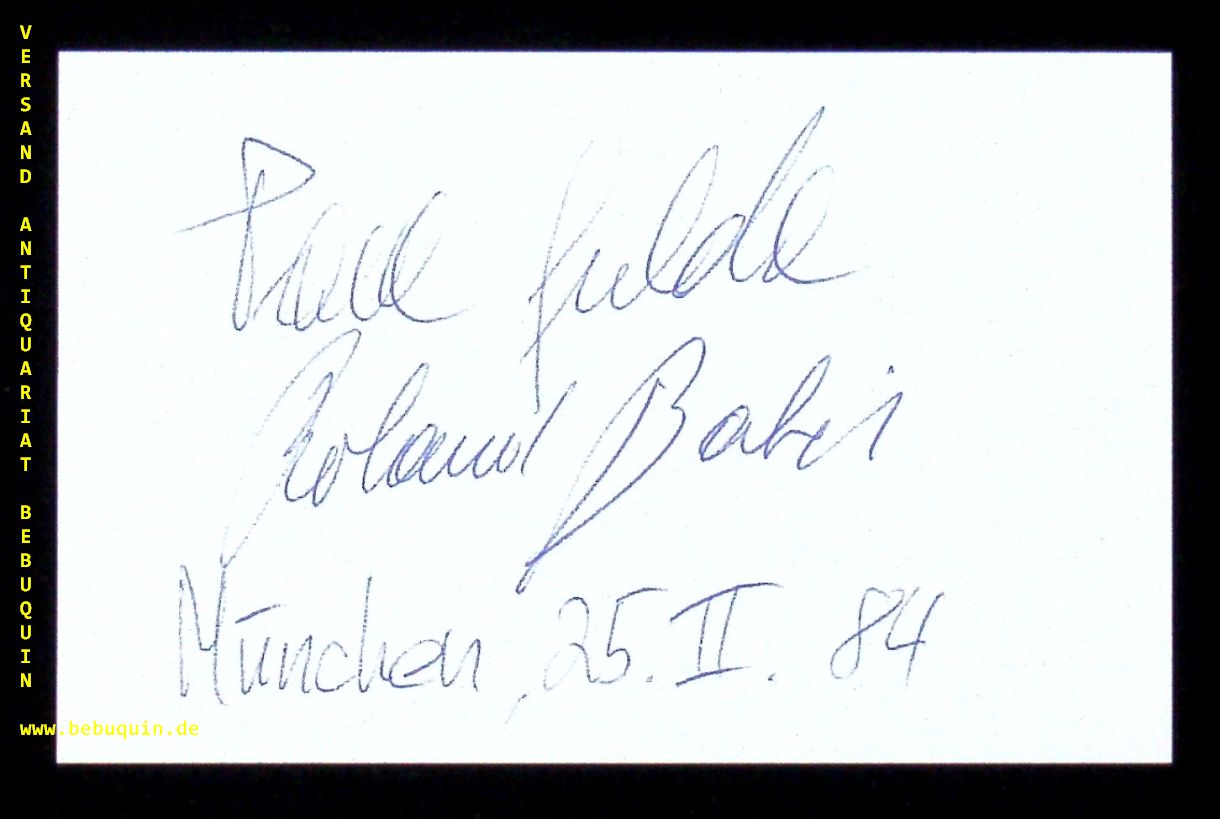 GULDA, Paul + BATIK, Roland (Pianisten): eigenhändig von beiden signierte und datierte Autogrammkarte. München, 25.2.1984. 8 x 12,5 cm Karteikarte. selten. Paul Gulda (* 25. Oktober 1961 in Wien) ist ein österreichischer Pianist, Komponist und Dirigent. Roland Batik (* 19. August 1951 in Wien) ist ein österreichischer Pianist und Komponist, der als Wanderer zwischen den musikalischen Welten Tradition und Moderne bzw. Klassik und Jazz verbindet. (Wikipedia)