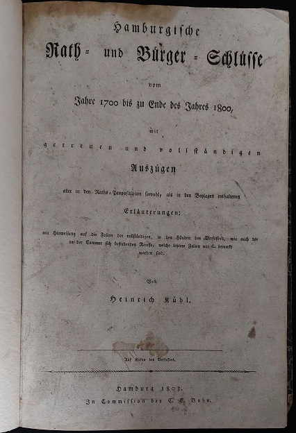 KÜHL, Hamburgische Rath- und Bürger-Schlüsse vom Jahre 1700 bis zu Ende des Jahr…