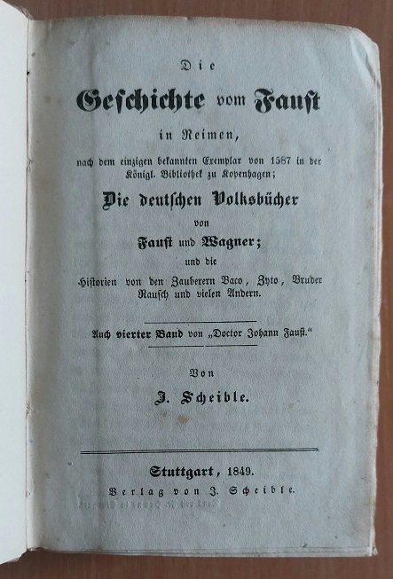 SCHEIBLE, Die Geschichte vom Faust in Reimen, nach dem einzigen bekannten Exempl