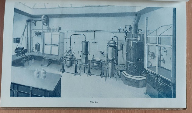 TECHNIK.– LENTZ, E.A.: Katalog der Apparate-Bauanstalt, Liste No 64. Apparate aus den Abteilungen: Einrichtung bakteriologischer/serologischer Laboratorien, Centrifugenbau, aseptische Wundbehandlung, elektro-medizinische Apparate, Krankenhaus-Einrichtungen, chemische und pharmazeutische Laboratorien. Berlin (Eigenverlag), 1912. 59 S. + 93 lithographische Abb. auf Pergamenttafeln. ill. OKart mit Siberhöhung. NaT, feine repräsentative Liste. seher seltene EA.