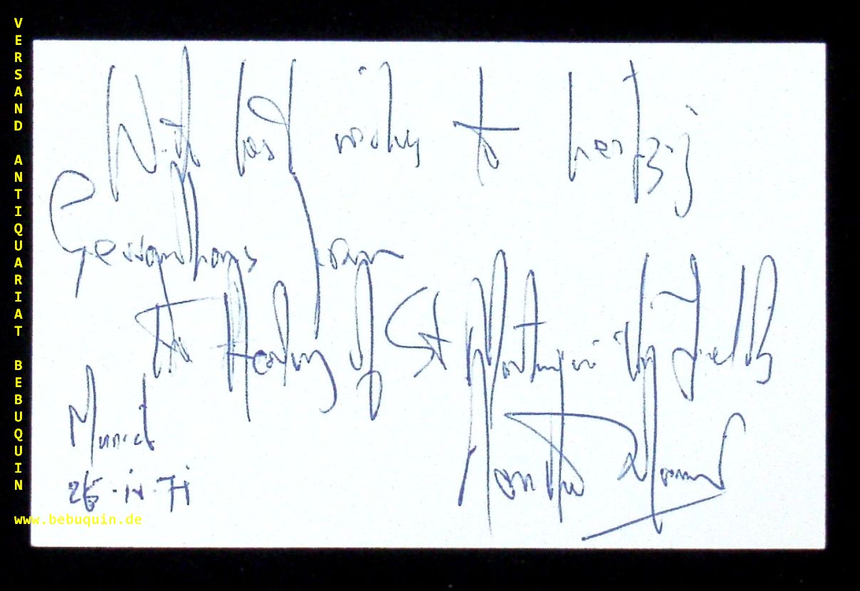MARRINER, Sir Neville (Dirigent): eigenhändig signierte und datierte Autogrammkarte With best wishes to Leipzig Gewandhaus …. München (Herkulessaal), 26.4.1971. 8 x 12,5 cm. Karteikarte.