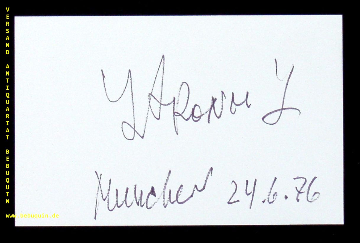 ARONOVICH, Yuri (Dirigent): eigenhändig signierte und datierte Autogrammkarte. München, 24.6.1976. 8 x 12,5 cm. Karteikarte. Juri Michailowitsch Aronowitsch (* 13. Mai 1932 in Leningrad; † 31. Oktober 2002 in Köln) war ein israelischer Dirigent russischer Herkunft. (Wikipedia)