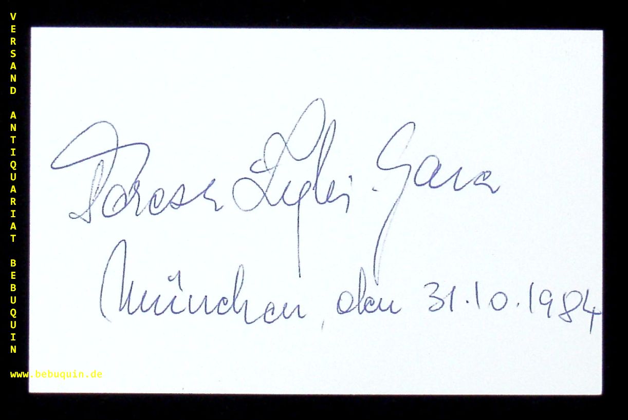 JAZZ.– ZYLIS-GARA, Teresa (Sopran): eigenhändig signierte und datierte Autogrammkarte. München, 31.10.1984. 8 x 12,5 cm. Karteikarte.