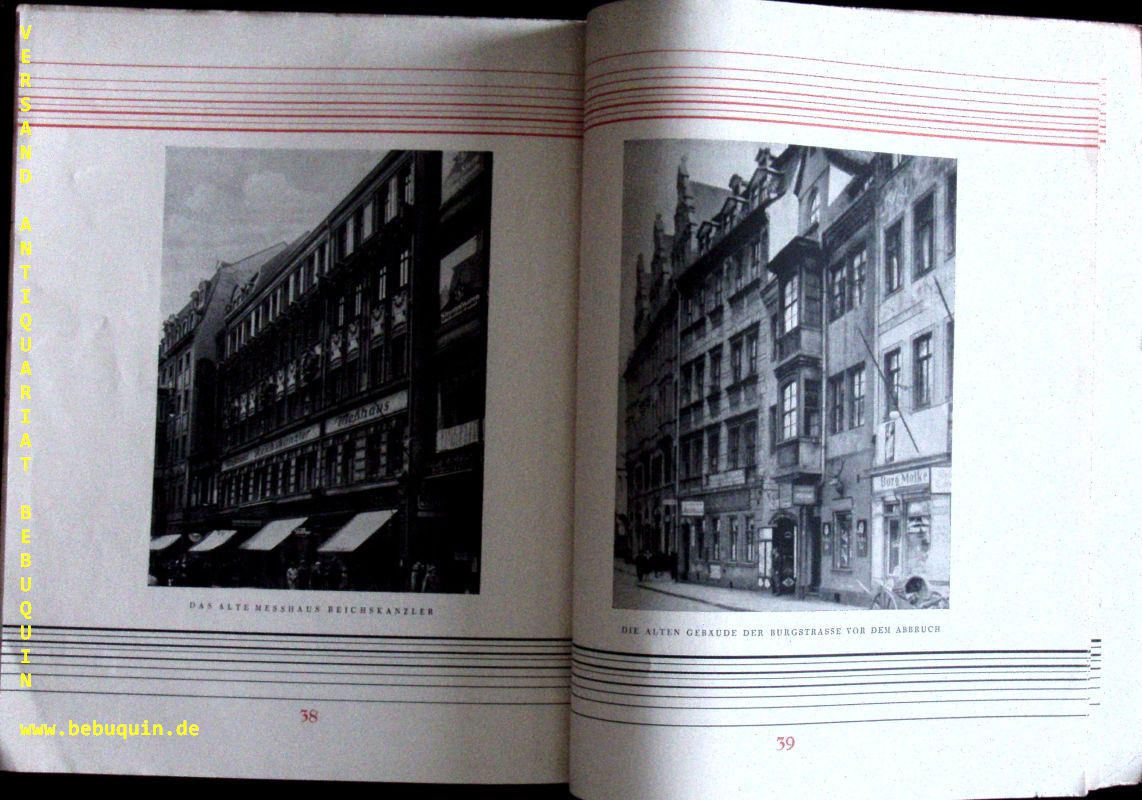 LEIPZIG.– MESSEHAUS PETERSHOF.– Festschrift zur Eröffnung am 3. März 1929. Leipzig, 1929. Gr. 8°. 48 S. mit zahlr. fotografischen Bidern vom Baugeschehen und eindrucksvollen Majuskeln im Stil der neuen Sachlichkeit. ill. OKart. Kanten leicht bestoßen.